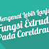 Extrude adalah sebuah tool yang terdapat pada coreldraw lebih tepatnya ada pada bagian blend tool yang berfungsi untuk memberikan efek tiga dimensi (3D) pada sebuah objek atau text.